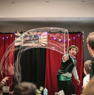 - Un número de “burbujas gigantes” donde después de hacer todo tipo de figuras con jabón el homenajeado y algunos amigos terminan metidos en una.